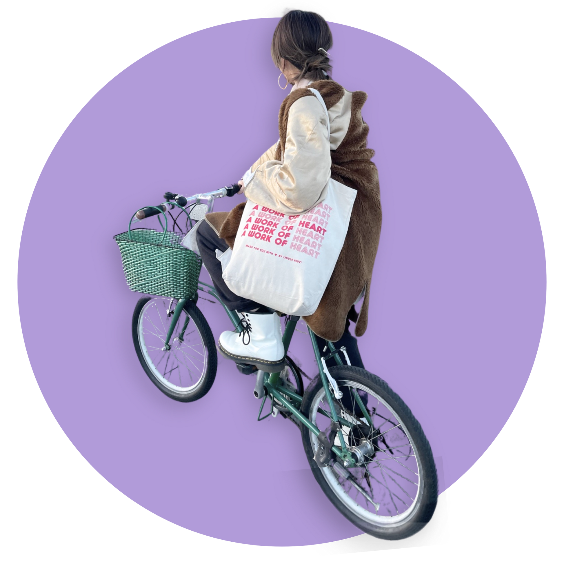 トートバッグには【A Work of Heart】のメッセージ入りです。